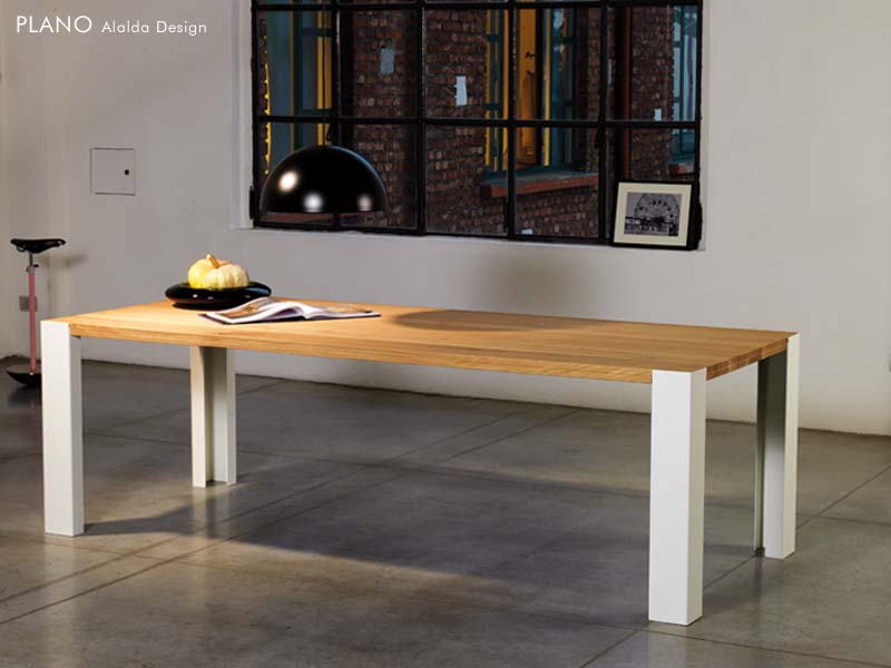 Quando la geometria trova la sua perfetta applicazione: le linee nitide del piano (sia in legno massello che in cristallo extra light trasparente) incontrano armoniosamente la ricchezza di spessore delle gambe. Un contrasto forte ed elegantemente bilanciato, che ammorbidisce la rigorosa geometria di forma offrendo un’ineguagliabile continuità visiva.