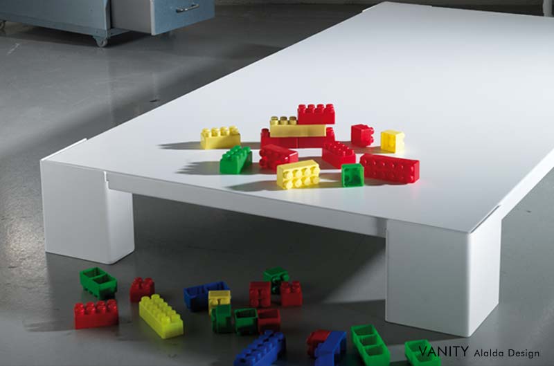 Il piano d’appoggio sottile ed etereo che contraddistingue questo tavolino rivelato in chiave contemporanea si sposa con la solidità materica delle gambe, offrendo una struttura semplice ed equilibrata, in grado di lasciare impresso nella mente un segno forte e deciso.